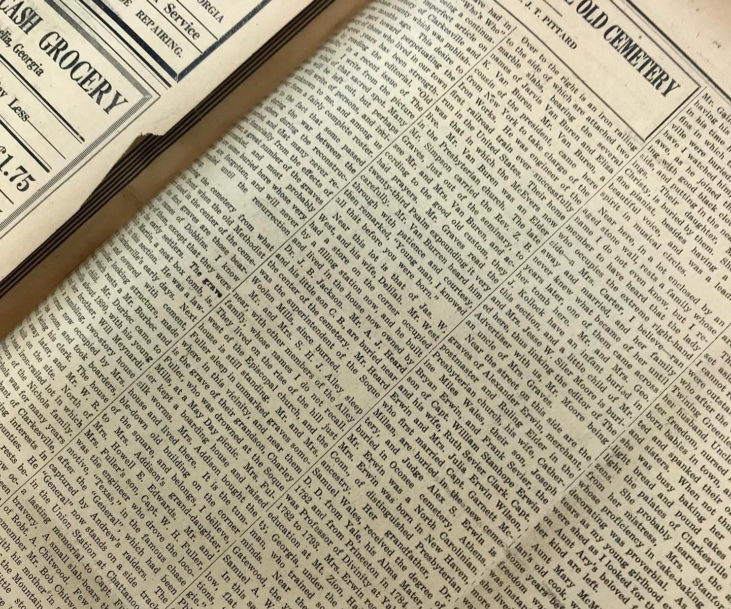 Entitled Who’s Who in the Old Clarkesville Cemetery, she shared recollections of individuals she knew or had heard about from her time growing up in Clarkesville. This newspaper article transformed our understanding of the Old Clarkesville Cemetery, providing valuable clues for researching the people whose lives shaped Clarkesville’s earliest days.